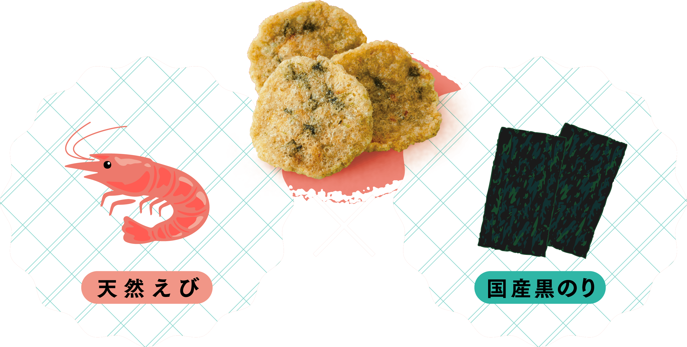 こだわりの天然えびに国産黒のりの風味ふんわり