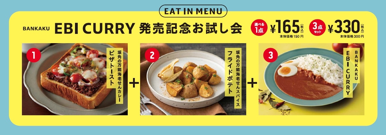 ※BANKAKU KITCHEN 店頭でお休みしておりました「海老カレー」「海老カツカレー」も、10 月30 日より復活販売いたします。