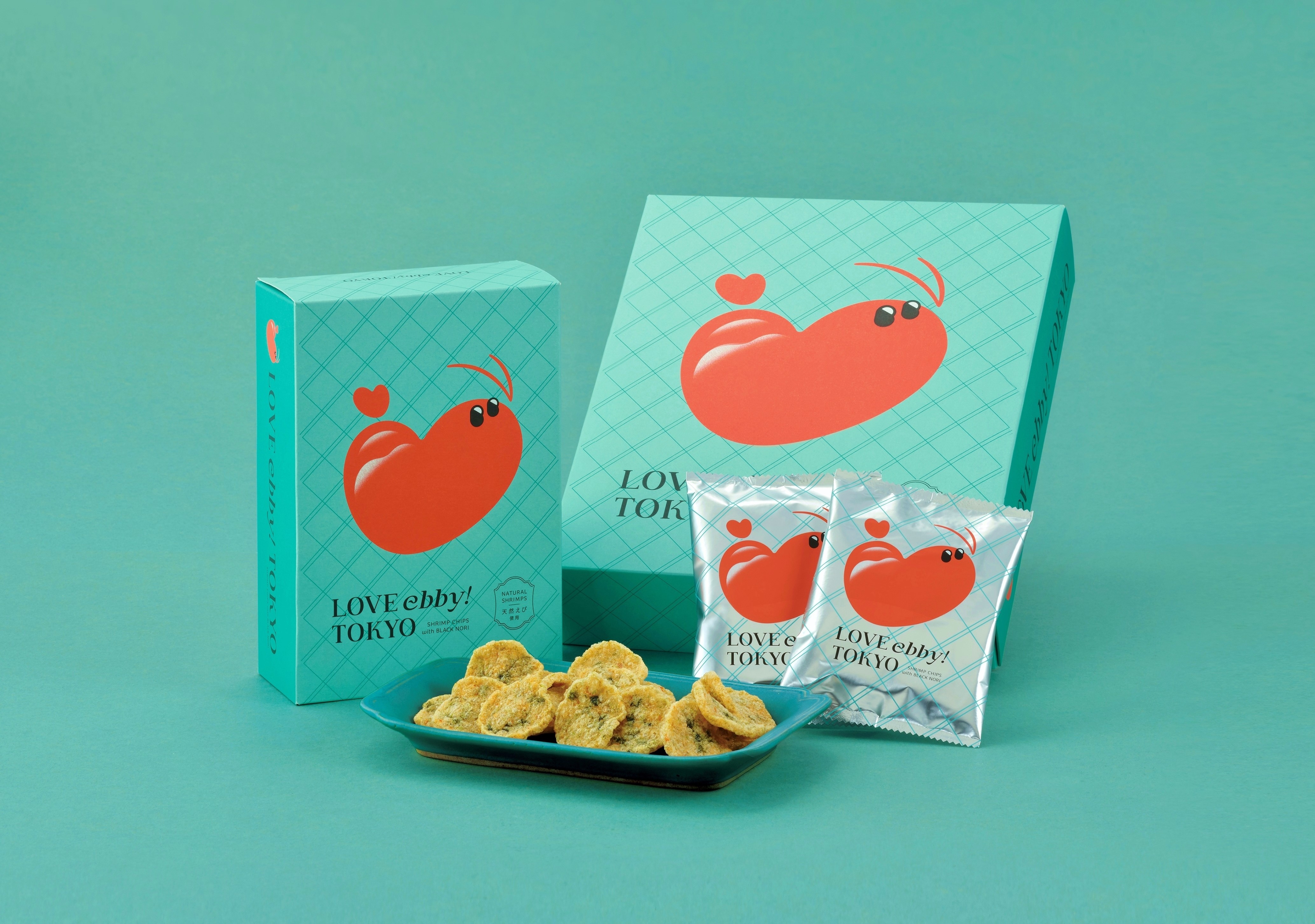 〈LOVE ebby! TOKYO〉のインパクト抜群なパッケージの中身は、こだわりが詰まったサクッと食感のエビチップスです。